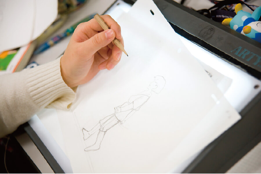 OICでは、通常の授業での作品指導に加え、早い段階から就職活動に向けたポートフォリオ指導を行っています。一人ひとりのポートフォリオをチェックするのは業界出身の教員。プロとして通用するかどうかという観点から20項目にわたって定期的に評価するため、自分のポートフォリオがどのレベルに達したかを客観的に知ることができます。