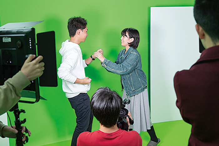 クロマキースタジオを駆使して撮影した映像に、CGやVFXなどを合成して、リアルな映像制作をめざします。さまざまなソフトを活用して、就職活動に必要な作品制作を行います。