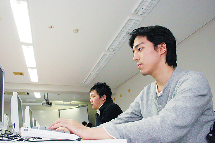 基本情報技術者試験の合格に向けた学習が中心。夏休みには対策講座もあり、就活のためにも1年次の合格をめざします。1年次から実習も多くプログラミングの理解も深まります。