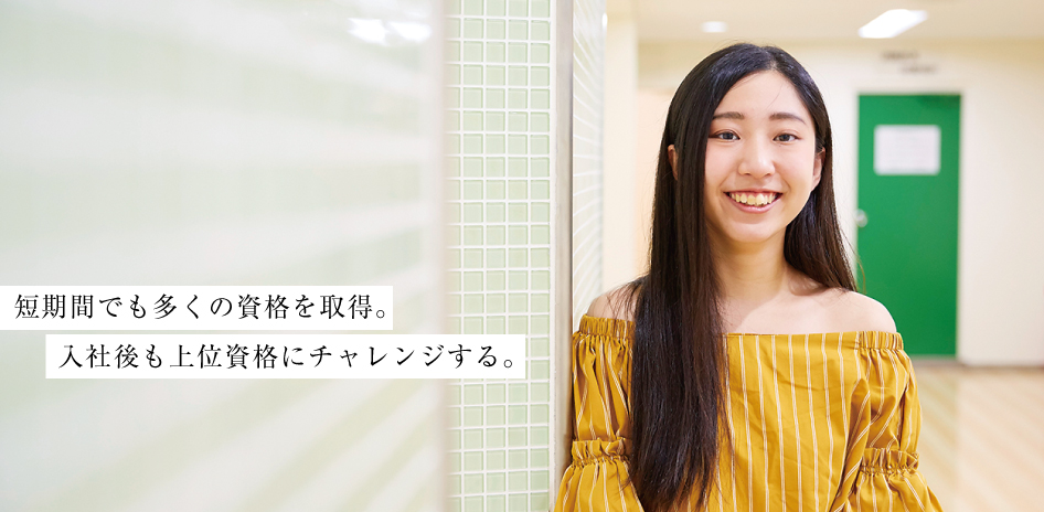 OICはやる気さえあれば、2年制でもたくさんの資格が取れます。面接では、資格取得を頑張ってきたことと、入社後してからもより上位の資格をめざしていきたいという話をもとに、向上心があることをアピール材料にしました。面接練習は「キャリアデザイン」の授業の以外にも先生方に実践形式で教えていただきました。先生からは内容はいいけど表情が堅いことと、明るい印象につながるように声のトーンをやや上げるようにアドバイスを受けました。面接当日は準備してきた通りにできたと思います。本格的に就活が始まる前、本腰を入れられるようにインターンシップにも参加しました。1Dayインターンシップも含めて数社経験したことで、意識の切り替えができました。