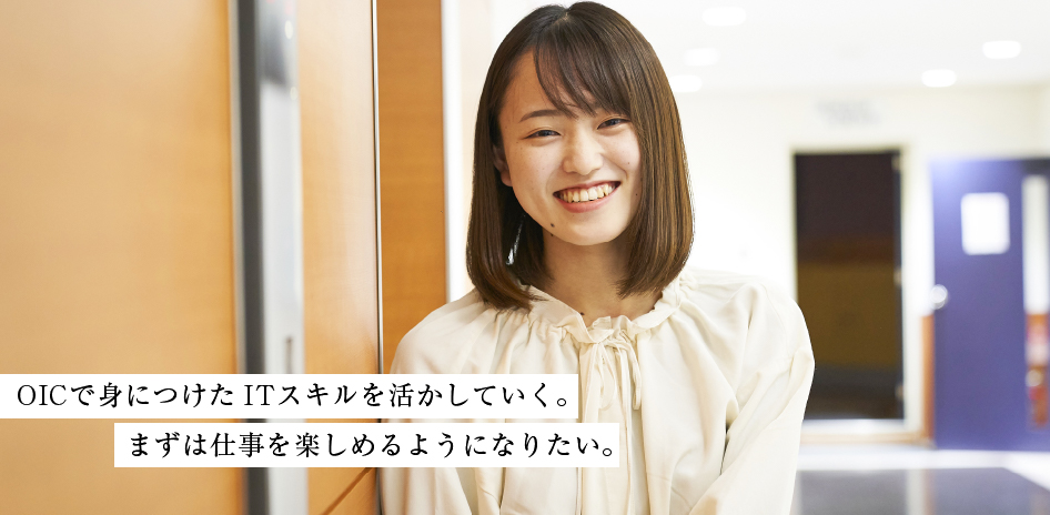 このコースに入った目的もそうだったのですが、パソコンスキルを習得できたことです。仕事でもパソコンスキルは必須のようで、内定先の先輩からは入社までに準備することとしてパソコンの勉強を挙げておられます。面接でも話題になったことですが、MOS、ビジネス能力検定ジョブパス2級、秘書検定3級の資格を取れたのもOICで学んだ大きな成果だったと思います。好きな授業は「コミュニケーション技法」といって、チームで商品企画をしてプレゼンテーションするという内容です。その授業に行くこと自体が楽しかったし、放課後に皆で企画書をまとめことや、苦手だったプレゼンテーションをやり遂げたことなどが印象に残っています。どんな仕事でもコミュニケーションは大切です。この授業のおかげ、就職前に人前で話すスキルを身につけることができました。