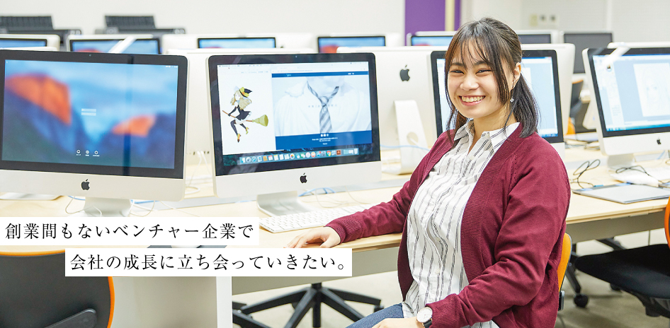 内定先は、売れるものをつくるというコンセプトを掲げるマーケティング企業です。創業間もない会社で、新卒の採用が私の年で2度目ということでした。今後の成長に立ち会えるベンチャー企業であることは、私にとって大きな魅力です。内定後には「まだ上のポストが空いている。頑張ってください」といわれたし、その期待に応えていきたいと思います。勤務先は新宿。東京で働きたいと思っていたので嬉しいです。