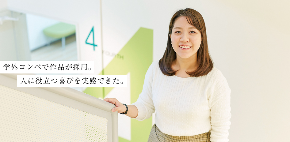 特定の授業というよりも、先生が常々話してくださった業界の話が参考になりました。業界出身の先生が現場経験を踏まえて、業界の厳しい側面も教えてくださるなど、夢だけじゃなくて現実的なこともしっかり意識させてくれました。でもモチベーションは落ちませんでした。厳しさのなかでも、どうすれば夢が叶うのかを丹念に語ってくださったからです。学外コンペに参加し、入賞したことも印象に残っています。面接でもアピールしたことですが「テンサポ」という地域連携のコンペに応募。OICのある天王寺区が「天王寺区をよりよいまちに育てていくサポーター」事業を始めるにあたりロゴマークを公募し、私の2作品が選ばれたのです。受賞後は区役所からも取材に来てくださったし、私自身デザインという仕事のやりがいを実感できた経験になりました。OICはコンペにチャレンジする機会が多いので、そこで成果をあげれば就職のよいアピール材料になります。