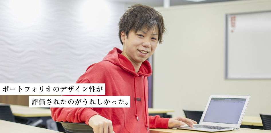 熱心に勉強したのはWebデザインの授業です。入学後すぐにコーディングも実践的に学びました。実際にサイトをつくっていくことで力をつけるのがOICの学び方で、入学後3カ月くらいには簡単なものができるようになりました。アウトプットにはインプットが必要です。先生から言われていたのが「毎日、いろんなサイトを見て目を肥やしなさい」ということで、それも日々実践していました。見るときのポイントは玄関であるトップページのデザインや構造です。毎日多種多様なサイトをチェックしていると、次第にいいものとそうでないものを見分ける能力がついてきます。いい見本がわかると、そこから優れたデザインや技術を学び取ることができ、それが次のアウトプットにつながります。OIC入学後は休日でも自主制作するなど、1年生から数多くの作品をつくってきました。就活に使えるレベルに到達したのは2年生になってからですが、それはもちろん1年生から積み上げた成果です。
