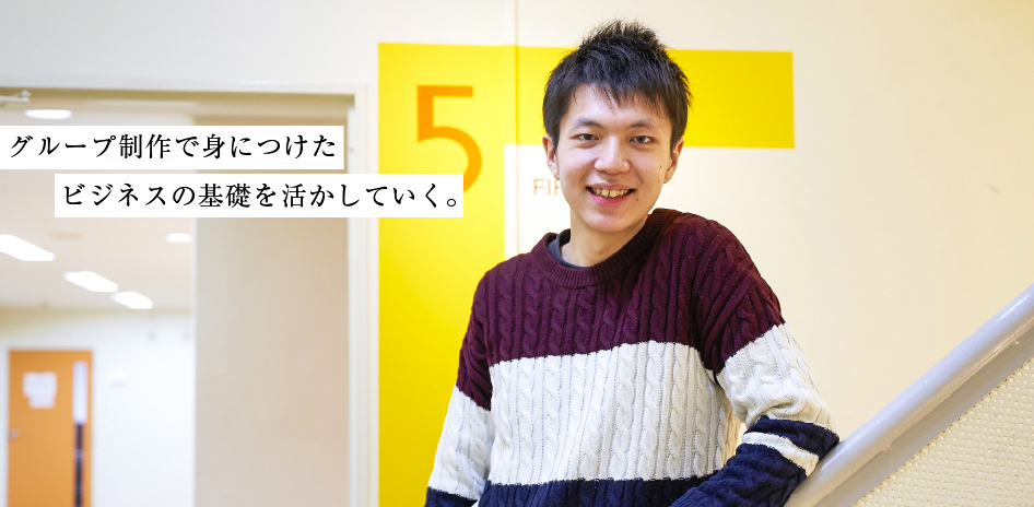 授業でのグループワークなど様々な機会でコミュニケーションとコラボレーションが体験できたことです。クラスでの日頃の学び合い、教え合いもその一つです。僕は販売の仕事に就きますが、グループワークで培ったコミュニケーション力や教え合いのなかで工夫した説明力などは、販売という仕事に活きてくるはずです。また自分の強みとして、販売店に掲示するPOPをつくれるのではないかと思っています。これはぜひ現場に入って提案していきたいですね。Web部に所属していたことも印象に残っています。それほどWebに関心があったわけではないのですが、専門学校に入ったからには少しでも気になったことはやってみようと考えて入部。クラブでは知識が身についただけでなく、学年を超えた交流があり、学校生活をいっそう楽しめました。