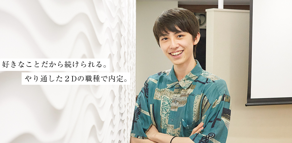 OICから毎年内定者が出ているのですが、自分としてもカプコンは絶対に受けようと決めていた会社です。だから就活のためのポートフォリオも、カプコンを意識して仕上げていきました。内定の職種はデザイナー。2Dの絵を描く仕事で、おそらく背景画での採用だと思います。やりたかった仕事です。得意なのはファンタジーの世界観。ありきたりなものではなく、独創性のある作品をつくりたいと意気込んでいます。