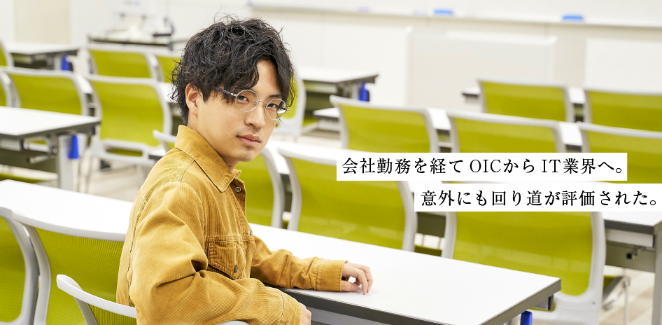 内定先の選考は面接が中心だったと思います。面接練習はキャリアブートキャンプ(就職対策の合宿)で行いました。そこで注意されたのは、具体的なビジョンを描いて面接に臨むことの大切さでした。その点を意識して練習を繰り返せたのは成果だったと思います。それでも当日は緊張感が抜けず、最初の挨拶をきちんとして、第一印象をよくすることに集中するよう努めていました。担任の先生には、とくに履歴書の添削を何度もしていただきました。よく指摘されたのは、結論から書くことと自分の強みを明確にするという点でした。僕は入学前、会社に勤務していました。大学浪人と違って学生としてもブランクがあり、こんな自分が採用してもらえるのか、正直不安でした。しかし、内定先の採用担当の方は「寺本くんのそういう部分を評価している」と言ってくださいました。自分ではマイナスだと思っていた回り道が評価の対象になるのですから、OICに入る決断をして本当によかったと思います。