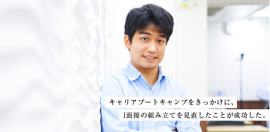 履歴書の書き方を一から教えていただいたり、キャリアブートキャンプ(就職対策の合宿)の面接練習で弱点を指摘してくださったり、さまざまなサポートを受けました。面接練習ではまず声量不足を指摘され、その後の練習で改善するように努めました。さらにキャンプは、面接のアピール内容を見直すきっかけになりました。OICでは実際の業務の流れをチームで学ぶ「システム開発演習」があり、現状分析、コーディング、結合テストなどいろんな実務を実践的に体験しました。そこで培った知識・技術をアピールするつもりで準備をしていたのですが、どうも内容が深まりません。思案したところ、知識・技術のような他者と比較できることなら上はいくらでもいると気づきました。そこで、演習を通じて人間的に成長できたことをアピールする方針に切り替えました。この方針転換は成功したと感じています。