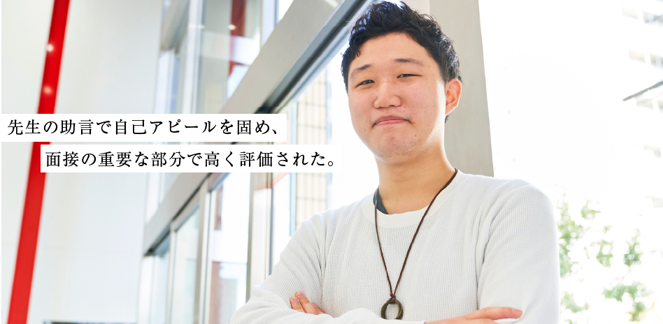 とくに印象的なのが面接で、何と社長と1対1での面接でした。しかも30分間。「細かい言葉づかいは気にしなくていいので、30分間好きに自己アピールをしてほしい」と言っていただき、僕がIT業界をめざしたきっかけや、勤務地に名古屋を選んだ理由などをお話ししました。面接の自己アピールについてはもちろん準備して臨んだのですが、固まるまでは苦労しました。勤務地に名古屋を選んだのは、関西を離れて独立心を養いたいという理由でした。でも先生からは「それだけではダメ。名古屋以外の都市でもできる」と、名古屋である必然性まで詰めるように指示されました。そこで面接で話したのは「実際に降り立ったとき大阪に劣らない大都市だと実感し、そのうえリニアの開通予定もあってより発展が見込まれる。この好機にITを通じて名古屋の活性化に貢献したい」という内容でした。これには非常にいい反応をいただきました。